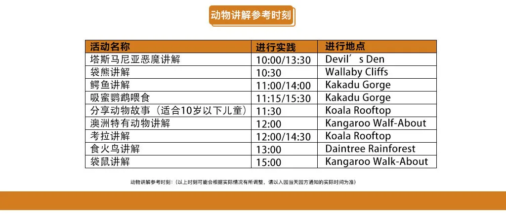 2. 聆听饲养员的动物讲解(参考产品介绍时刻表)